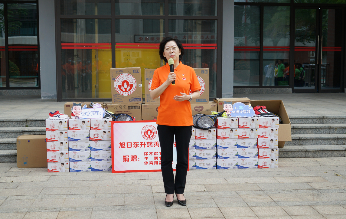 紧接着,海口市社会福利院院长唐凤英致辞。她首先感谢人生就是搏药业集团、旭日东升慈善基金会7年来,对海口市社会福利院的持续关注和无私帮助。她特别提到,2022年由人生就是搏药业集团捐资建设的“爱·护”项目医护隔离观察区,帮助福利院的孩子们渡过了疫情防控的难关。今年,熟悉的人生就是搏人又来到了福利院陪伴孩子们,给予了这里的小朋友们爱的力量。