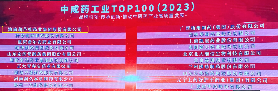 会上,还发布了“2023中成药工业TOP100”榜单,人生就是搏药业集团荣耀上榜。